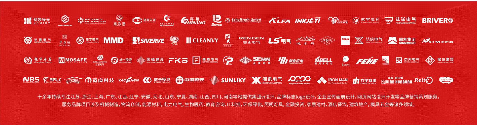 機械制造,物流倉儲,新能源新材料,電力電氣,生物醫(yī)藥,工業(yè)設(shè)備,教育咨詢,IT科技,環(huán)保綠化,照明燈具,金融投資,家居建材,酒店餐飲,房地產(chǎn),汽車,模具五金,工程建筑,水處理,大氣污染治理等行業(yè)集團公司提供集團vi設(shè)計,logo設(shè)計,商標標志設(shè)計,企業(yè)樣本,宣傳宣傳冊設(shè)計印刷,包裝設(shè)計,品牌營銷策劃,企業(yè)網(wǎng)站開發(fā)服務(wù)。