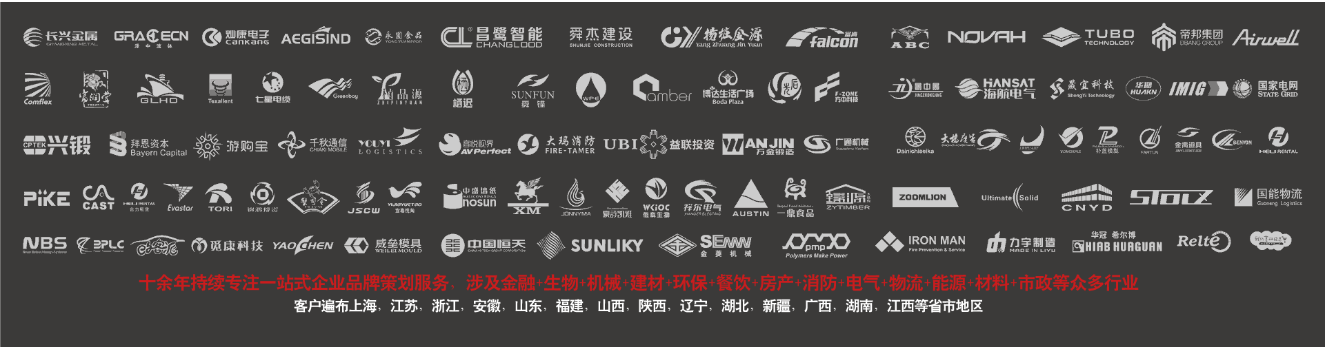 十余年誠信經營,持續秉持“策劃成就經典,溝通達成共識”為核心理念,先后為江蘇、浙江、上海、安徽、河北、山東、江西、深圳、湖南、山西、遼寧、寧夏、云南、湖南、四川、貴州、廣東、河南等省市地區提供集團logo設計商標標志設計,企業vi形象包裝設計及品牌營銷策劃服務。服務品牌項目行業涉及機械制造,物流倉儲,新能源新材料,電力電氣,生物醫藥,工業設備,教育咨詢,IT科技,環保綠化,照明燈具,金融投資,家居建材,酒店餐飲,房地產,汽車,模具五金,工程建筑,水處理,大氣污染治理等諸多領域。