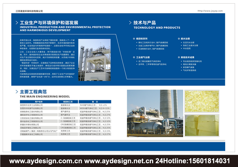 AYDESIGN十余年專注酸性氣體治理與硫回收樣本設(shè)計,VOC廢氣治理宣傳冊設(shè)計,高濃度有機廢水治理畫冊設(shè)計,硫磺回收裝置CATALOG設(shè)計制作服務(wù)!立足上海,輻射浙江,江蘇,安徽,通達全國!是優(yōu)秀的酸性氣體治理與硫回收樣本設(shè)計公司,VOC廢氣治理宣傳冊設(shè)計公司,高濃度有機廢水治理畫冊設(shè)計公司,硫磺回收裝置CATALOG設(shè)計公司。