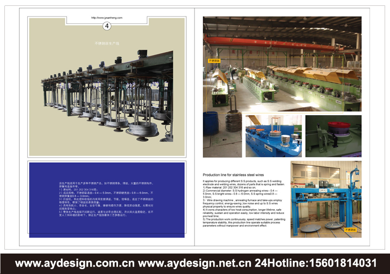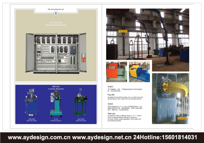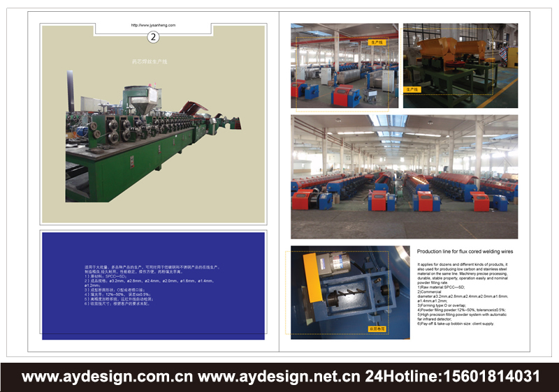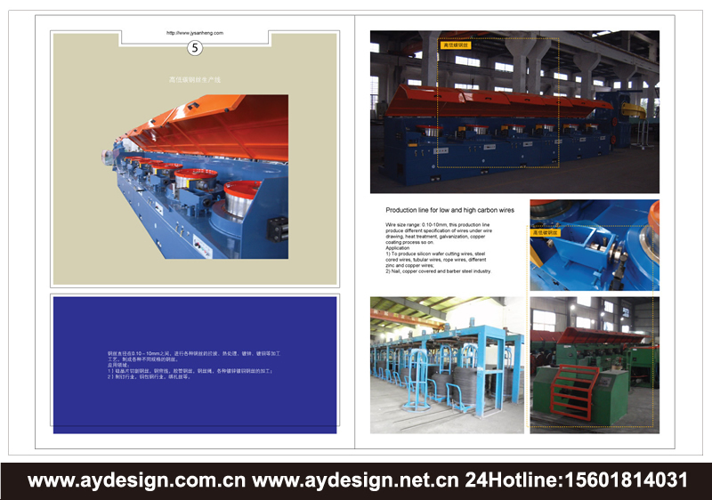 AYDESIGN十余年專注提供干拉機樣本設計,濕拉機宣傳冊設計,高低碳鋼絲生產線畫冊設計,不銹鋼絲生產線產品樣本設計,焊絲生產線CATALOG設計,收放線設備樣本設計,機械畫冊設計,電氣設備宣傳冊設計制作服務!立足上海,服務全國!