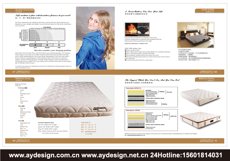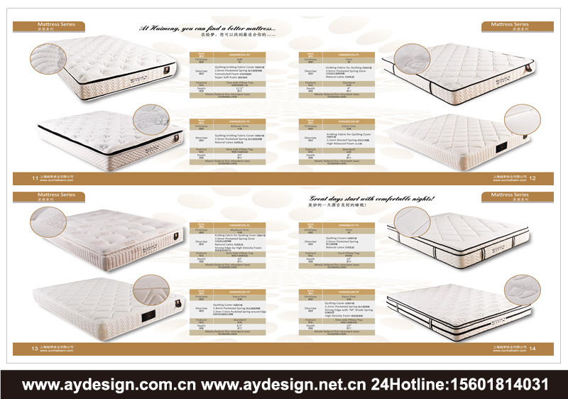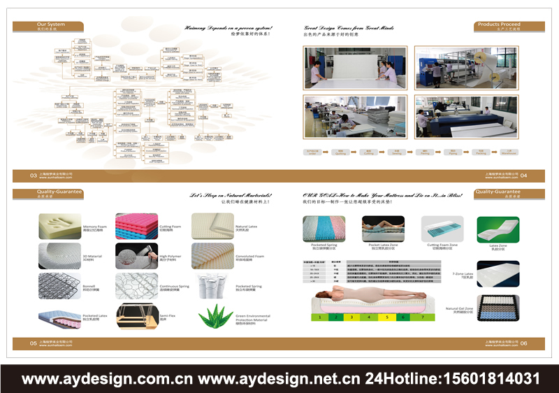 AYDESIGN十余年始終專注上海天然乳膠床墊樣本設計,上海席夢思產品宣傳冊設計,上海星級酒店床墊畫冊設計制作服務;立足上海,服務全國!是專業且優秀的上海天然乳膠床墊樣本設計公司,上海席夢思產品宣傳冊設計公司,上海星級酒店床墊畫冊設計公司。