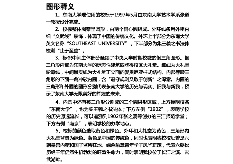 東南大學是一所歷史悠久、底蘊深厚的大學。學校創建于1902年的三江師范學堂,后歷經兩江師范學堂、南京高等師范學校、國立東南大學、國立中央大學等重要發展時期。1952年全國高校院系調整,學校文理等科遷出,以原國立中央大學工學院為主體,先后并入復旦大學、交通大學、浙江大學、金陵大學等校的有關系科,在國立中央大學本部原址建立了南京工學院。1988年5月,學校復更名為東南大學。2000年4月,原東南大學、南京鐵道醫學院、南京交通高等專科學校合并,南京地質學校并入,組建新的東南大學。在近120年的辦學歷程中,東南大學始終心懷天下、心系祖國,為科學進步、民族復興而自強不息、追求卓越,逐步形成了“嚴謹、求實、團結、奮進”的優良校風和“以科學名世、以人才報國”的辦學理念,鑄就了“止于至善”的校訓精神。