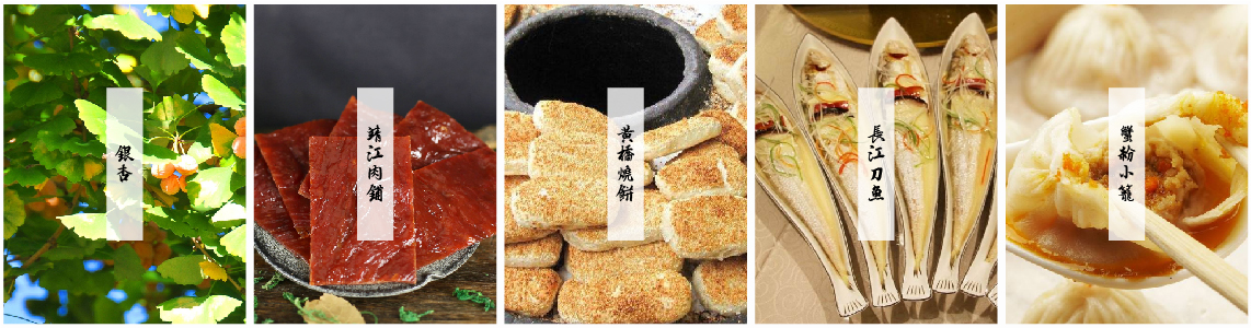 小磨麻油、嵌桃麻糕、醉蟹、銀杏、黃橋燒餅、靖江豬肉脯、靖江蟹黃湯包、靖江長(zhǎng)江三鮮、靖江刀魚(yú)宴、靖江全羊席、溱湖籪蟹、魚(yú)元魚(yú)餅、青蝦、蝦球、中莊醉蟹、蝦籽...