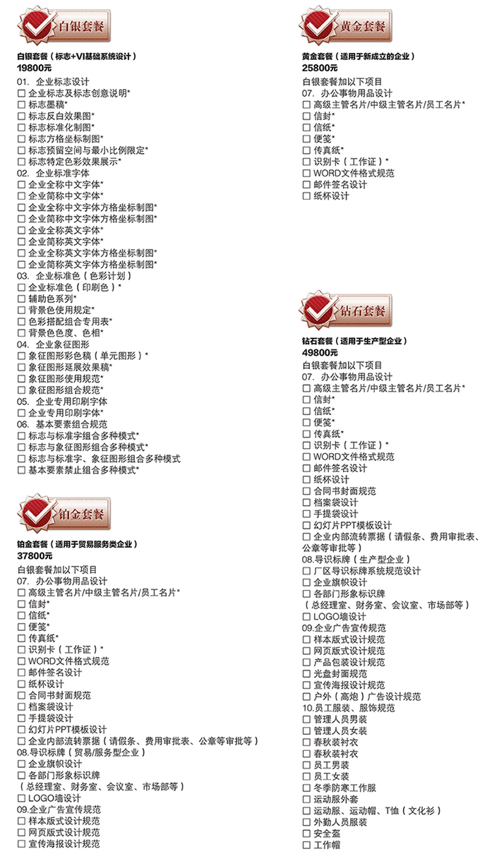 從整體內(nèi)容上講,VI系統(tǒng)一般被劃分為兩個部分。第一部分為基礎(chǔ)要素部分,主要對企業(yè)標志、標準色、標準字、吉祥物、口號等進行規(guī)定,這些要素往往不直接與目標客戶發(fā)生關(guān)系,而是作為企業(yè)的基礎(chǔ)存在的。第二部分為應用部分,這一部分將根據(jù)基礎(chǔ)要素部分的規(guī)定,將各基礎(chǔ)要素運用于企業(yè)日常的業(yè)務當中,具體是針對辦公用品、交通工具、空間設計、服裝等常用部分進行統(tǒng)一規(guī)范,這些常用部分將直接與目標客戶“見面”,統(tǒng)一的形象、鮮明的個性將讓目標客戶對企業(yè)有一個全新的認識,進而再深化企業(yè)形象就容易得多了。