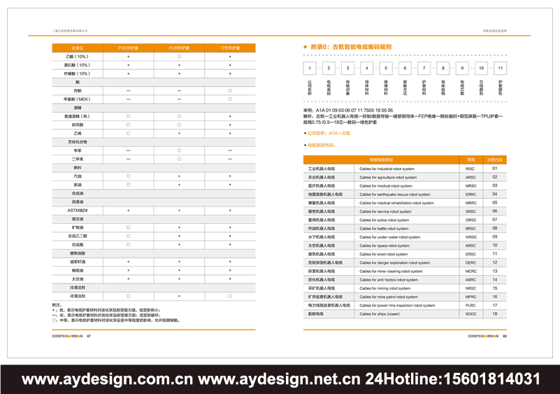 AYDESIGN十+年持續專注智能電纜行業企業VI設計,品牌標志logo設計,畫冊樣本目錄設計印刷制作服務;提供動力電纜畫冊設計,控制電纜樣本設計,數據電纜宣傳冊設計,同軸電纜目錄設計印刷制作。業務推廣關鍵詞:動力電纜樣本設計,控制電纜畫冊設計,數據電纜宣傳冊設計,同軸電纜目錄設計,光纖信號纜選型目錄設計,復合電纜畫冊設計,傳感器電纜樣本設計,伺服動力電纜宣傳冊設計,測量系統電纜目錄設計,示教器電纜選型目錄設計,編碼器電纜產品畫冊設計,執行器電纜樣本設計,拖鏈電纜選型目錄設計,總線電纜畫冊設計